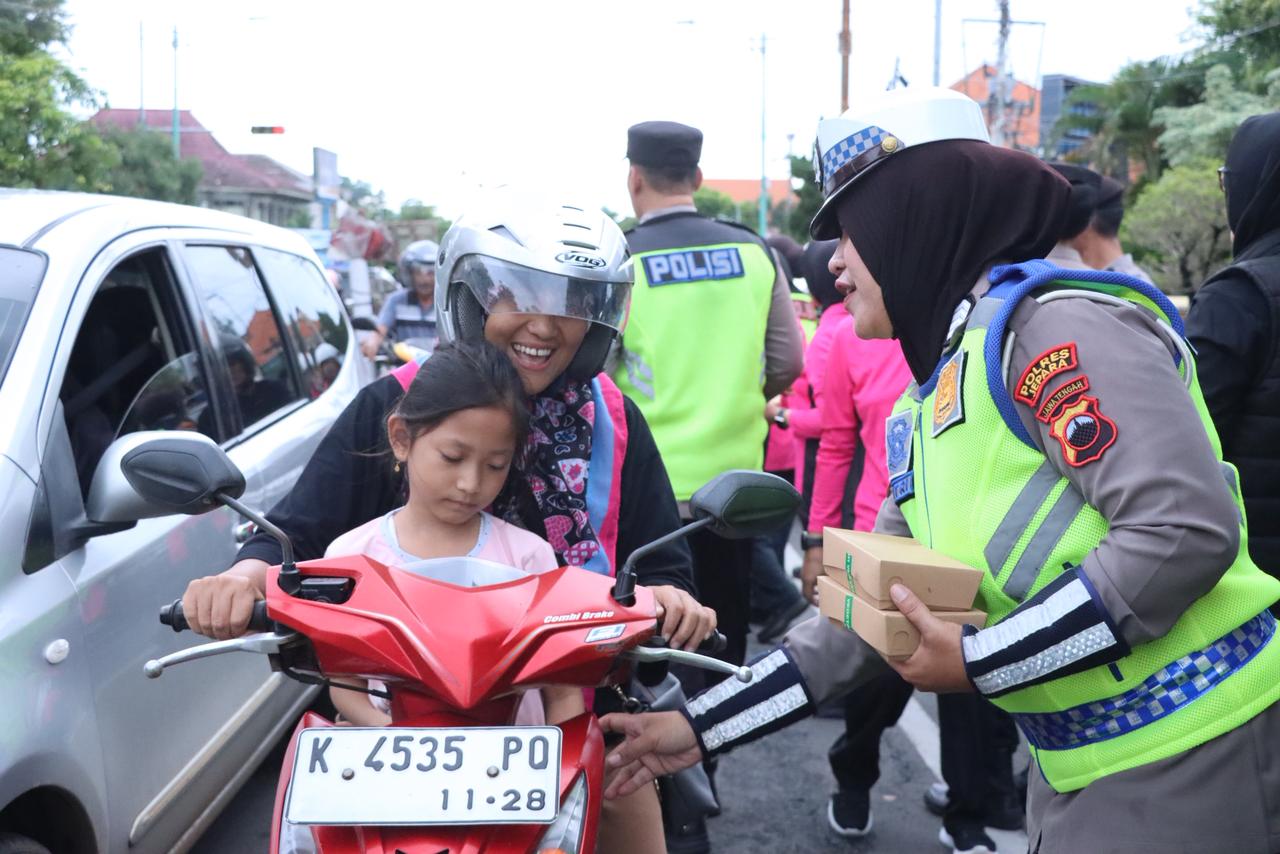 “Melalui program ini, kami ingin hadir lebih dekat dengan masyarakat, bukan juga sekadar menjalankan tugas pengamanan, tetapi juga berbagi dan merasakan kebersamaan dengan warga yang sedang menjalankan ibadah puasa,” ujar AKP Dwi saat ditemui usai kegiatan pembagian takjil di sekitar tugu Kartini Jepara, Kamis (19/2/2026).