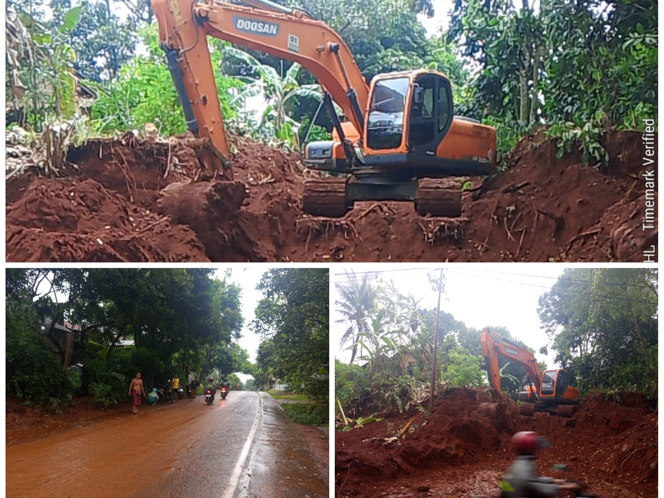 Diduga terjadi aktivitas galian C (tanah urug) menggunakan alat berat jenis excavator di kawasan perbukitan yang berbatasan langsung dengan jalan umum. Material tanah merah hasil galian tampak meluber ke badan jalan, terutama setelah hujan turun.