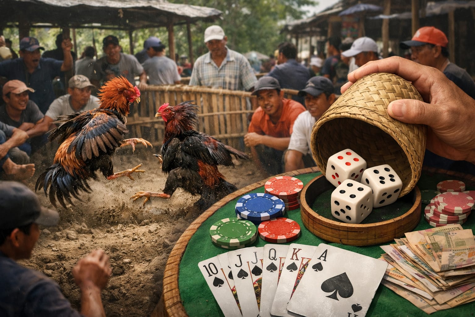 “Kalau siang sabung ayam, setelah itu lanjut dadu dan capsa sampai malam, kadang sampai pagi,” ujar sumber kepada redaksi.