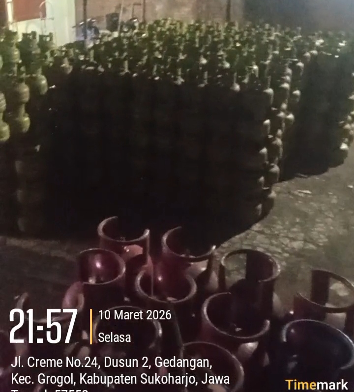 Sukoharjo, Mandalapost.id – Dugaan praktik penyalahgunaan gas LPG subsidi kembali mencuat di wilayah Gedangan, Kecamatan Grogol, Kabupaten Sukoharjo, Jawa Tengah. Sebuah lokasi di Jl. Creme No. 24, Dusun 2 diduga dijadikan tempat penampungan sekaligus aktivitas pemindahan isi gas dari tabung LPG subsidi 3 kilogram ke tabung non-subsidi ukuran 12 kilogram.