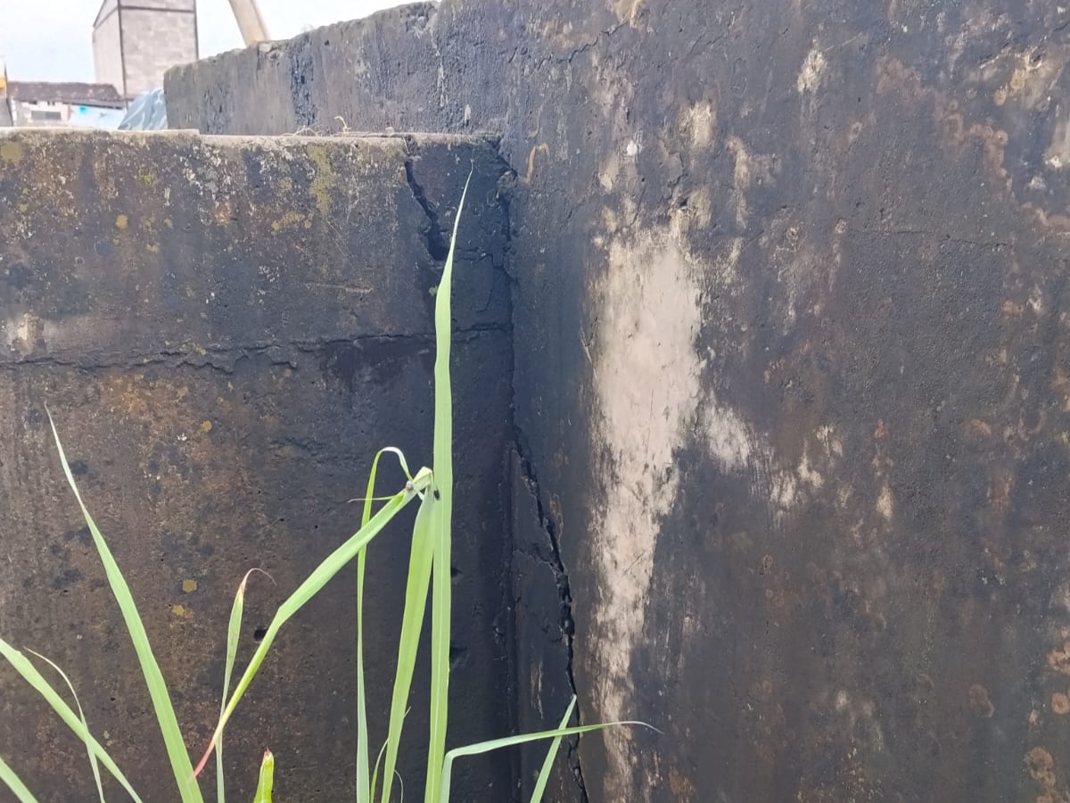Selain persoalan perizinan, warga juga mengeluhkan munculnya retakan-retakan pada bangunan rumah, yang diduga berkaitan dengan aktivitas pengeboran dan pengambilan air tanah.