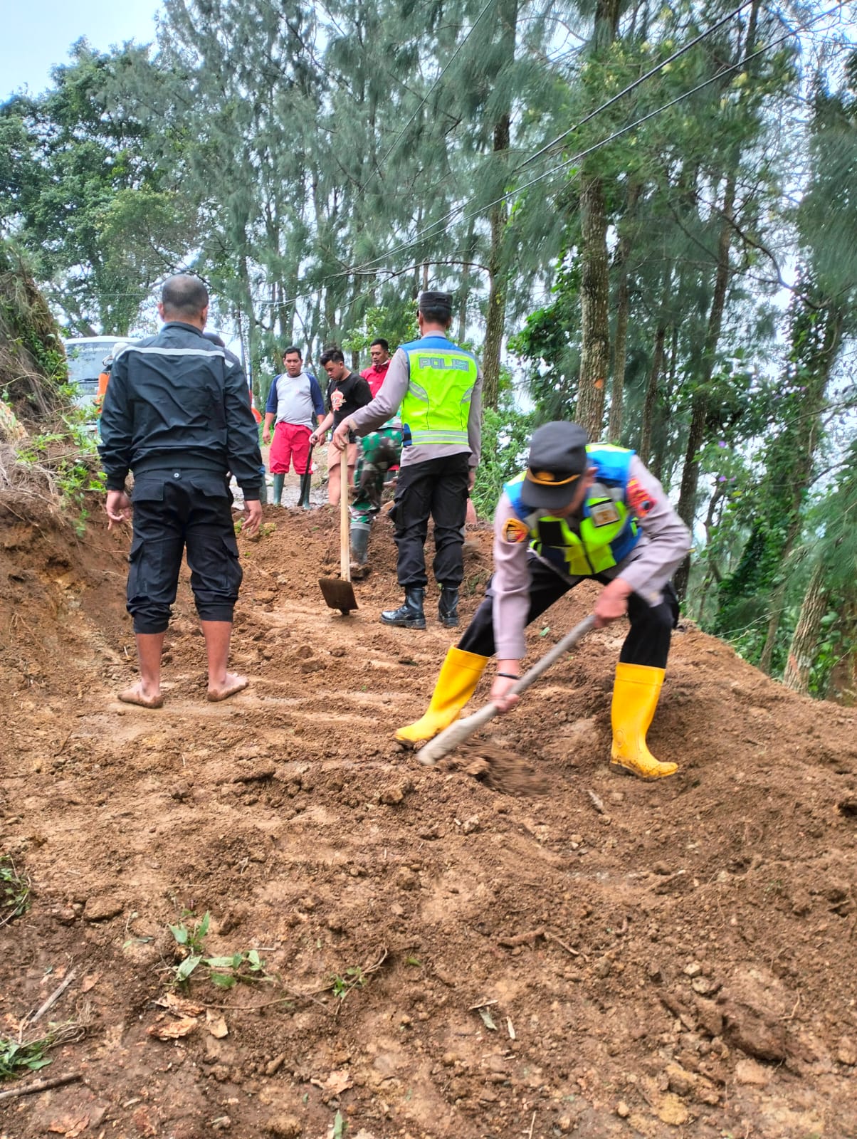 Meski demikian, petugas tetap mengimbau masyarakat untuk berhati-hati saat melintas karena kondisi jalan masih licin akibat sisa lumpur.