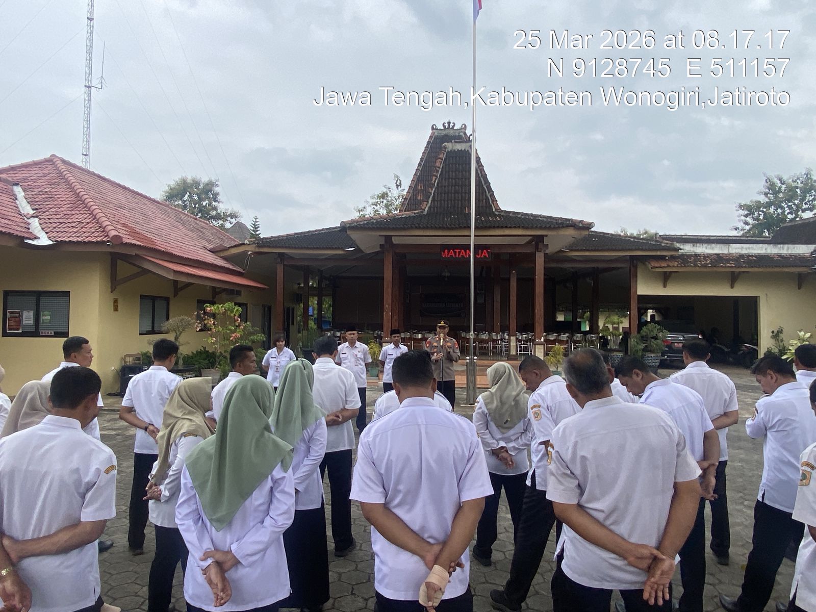 Apel yang dimulai pukul 08.00 WIB tersebut dipimpin oleh Camat Jatiroto Miran dan dihadiri Kapolsek Jatiroto AKP Pudiyono, Sekcam Jatiroto, para kepala desa/lurah se-Kecamatan Jatiroto, serta perwakilan dinas dan instansi terkait.