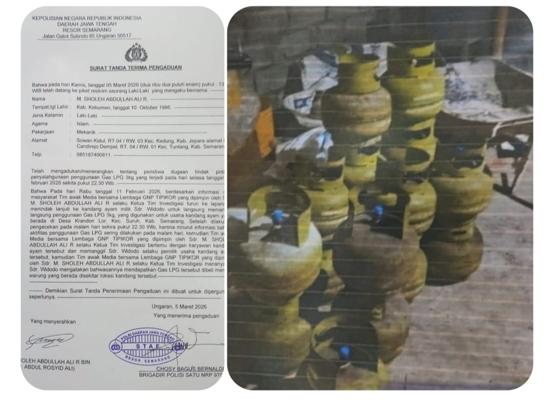 Kab Semarang, Mandalapost.id – Dugaan penyalahgunaan gas LPG 3kg subsidi pemerintah yang digunakan untuk bisnis peternakan ayam potong skala besar di Desa Krandon Lor, Kecamatan Suruh, Kabupaten Semarang, Jawa Tengah, kini dilaporkan ke kepolisian oleh Kabid Investigasi GNP Tipikor Jawa Tengah, Mohammad Sholeh Ali. Laporan ini diajukan pada 5 Maret 2026 ke Polres Kabupaten Semarang, menyusul viralnya kasus tersebut di media sosial dan adanya kejanggalan dalam sanggahan yang disampaikan pemilik kandang.