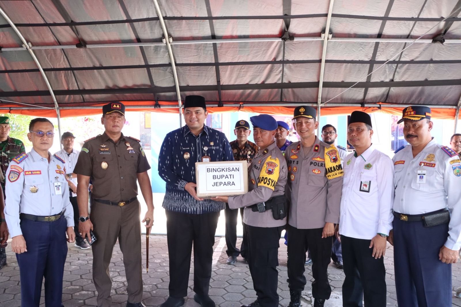 Saat mengunjungi Posko Pengamanan Nataru, Kapolres Jepara bersama Forkopimda menyerahkan sejumlah bantuan logistik untuk petugas yang berjaga.