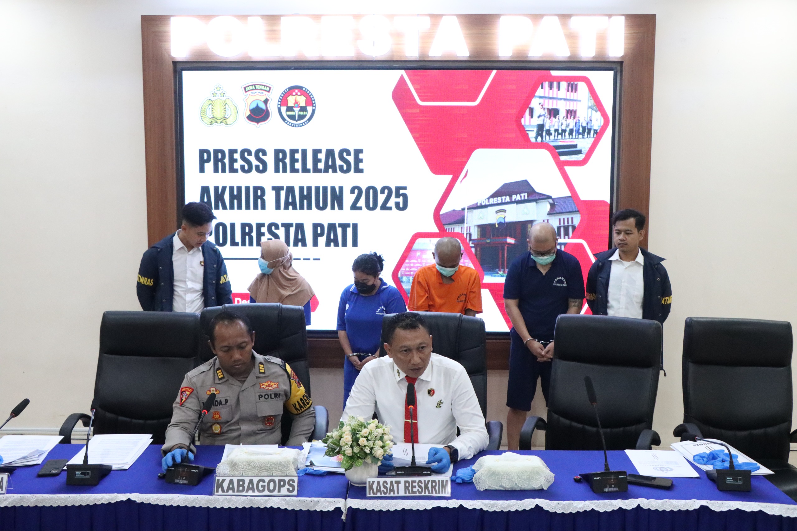 PATI,Mandalapost.id. – Satreskrim Polresta Pati mengungkap kasus tindak pidana pencurian kendaraan bermotor (curanmor) yang terjadi di wilayah pesisir Kabupaten Pati dalam rilis akhir tahun 2025, Rabu (31/12/2025) pukul 09.00 WIB hingga selesai di Mapolresta Pati. Seorang pria berinisial E.P. (35), warga Kecamatan Dukuhseti, berhasil diamankan setelah mencuri sepeda motor milik warga setempat.