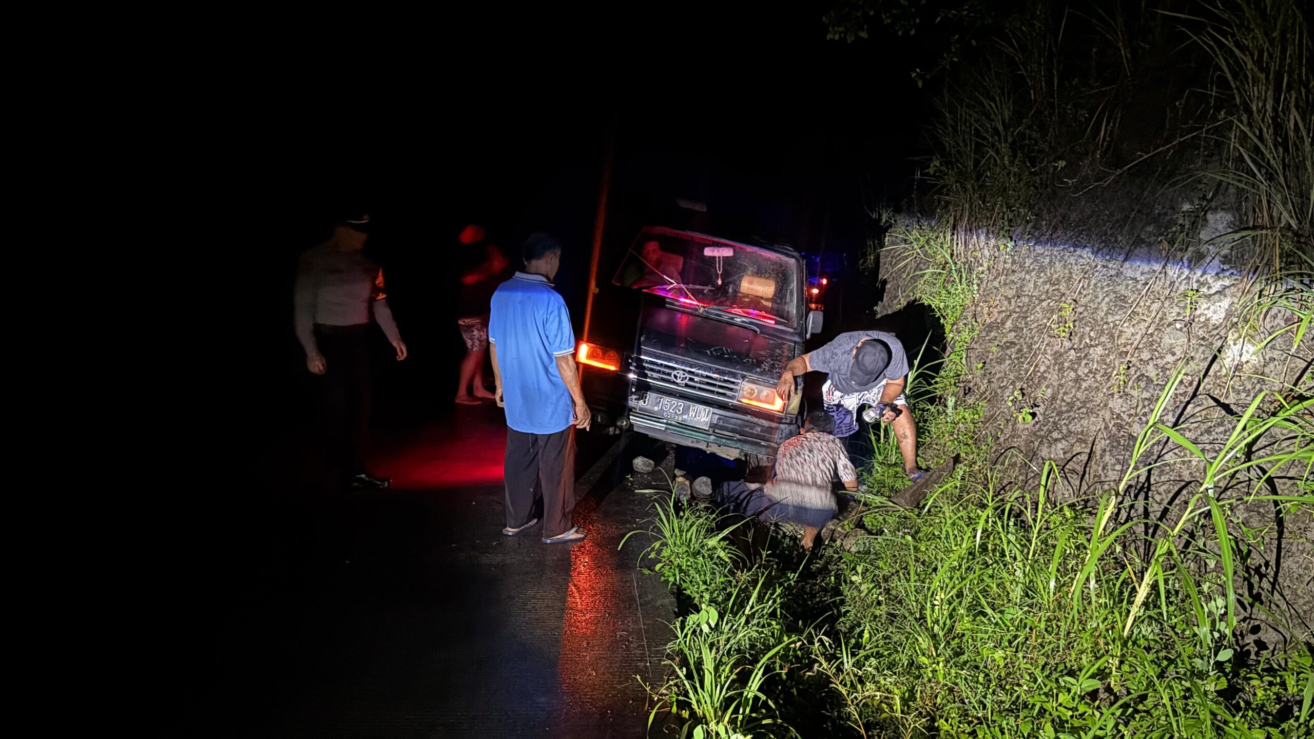 Mobil Terperosok di Parit Jalan Lingkar Wonogiri, Polisi Sigap Evakuasi Saat Operasi Ketupat Candi 2026