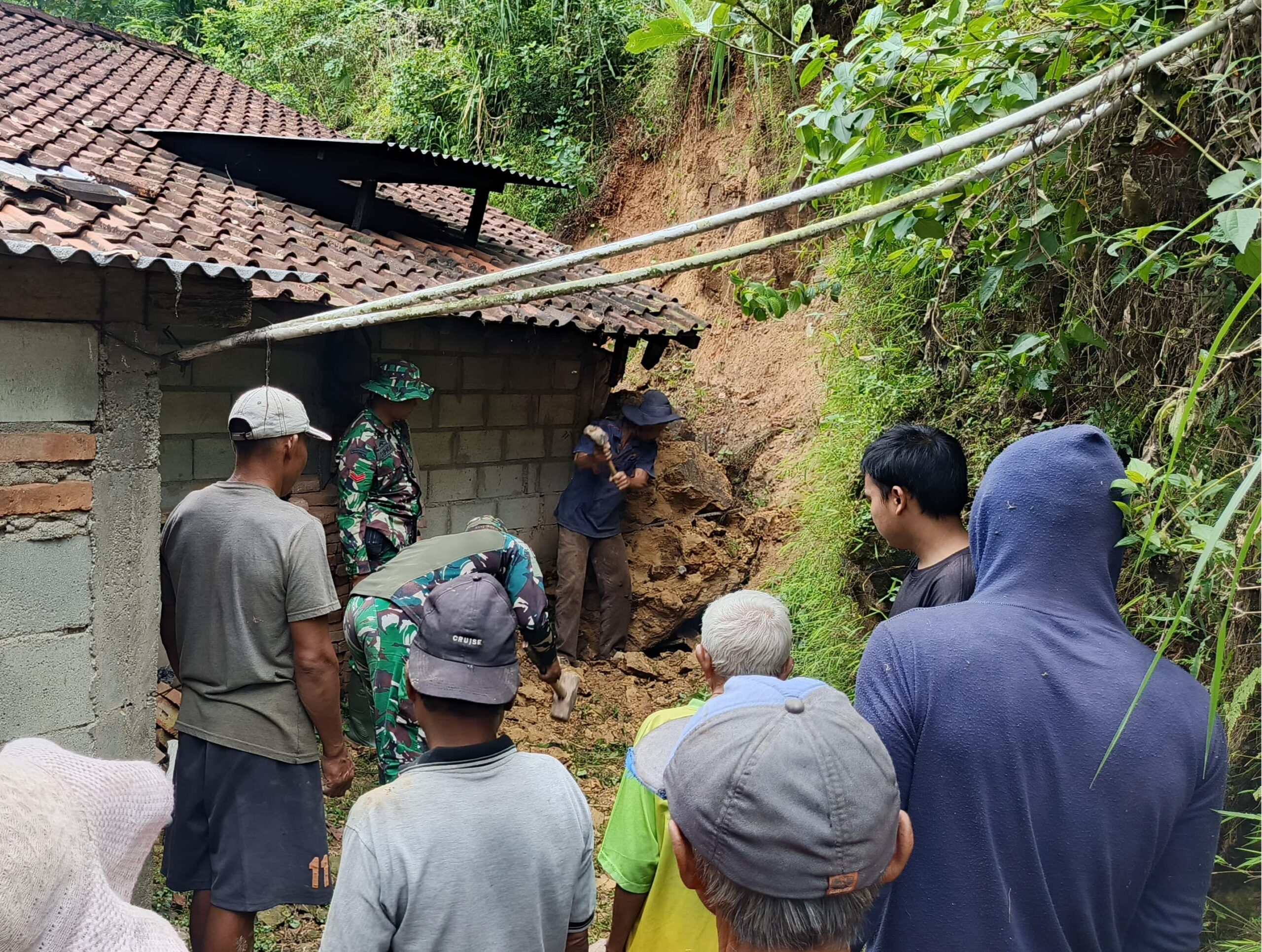 Wonogiri,Mandalapost.id – Pasca longsor yang menimpa tumah bagia dapur milik Tukiman (63) pada Kamis (1/2/2026) kemarin, Segenap personel Koramil 07Tirtomoyo Kodim 0728/Wonogiri dibawah komando Danramil Lettu Inf Agung Suwarno bersma personel Polsek Tirtomoyo, perangkat desa serta relawan desa Sukoharjo dan masyarakat melaksanakan kerja bhakti pembersihan material longsor, Sabtu (3/1/2026).