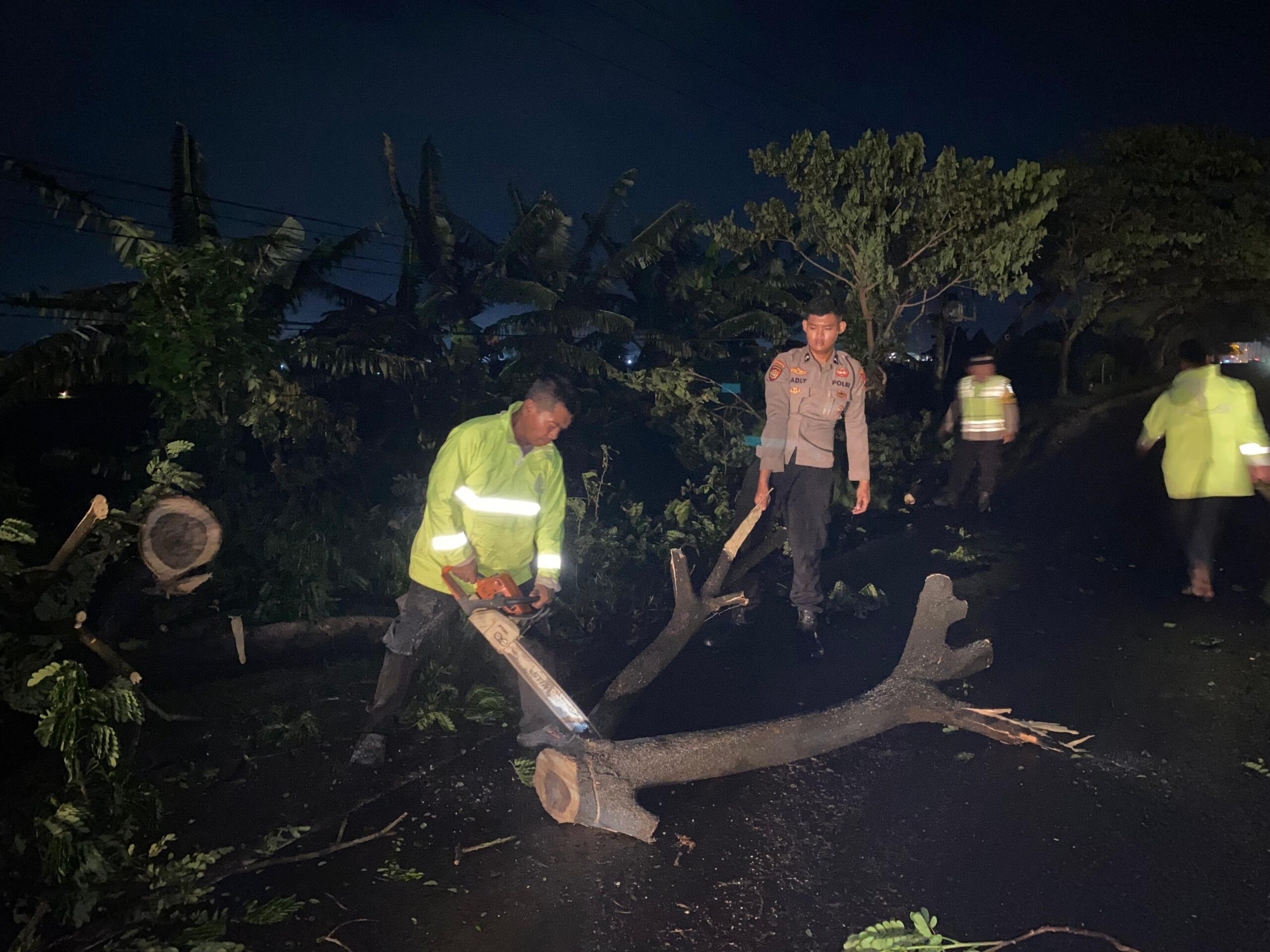 “Begitu menerima informasi adanya pohon tumbang yang menghalangi jalan, kami bersama personel piket segera menuju lokasi untuk melakukan penanganan awal,” ujar AKP Dwi Kristiawan.