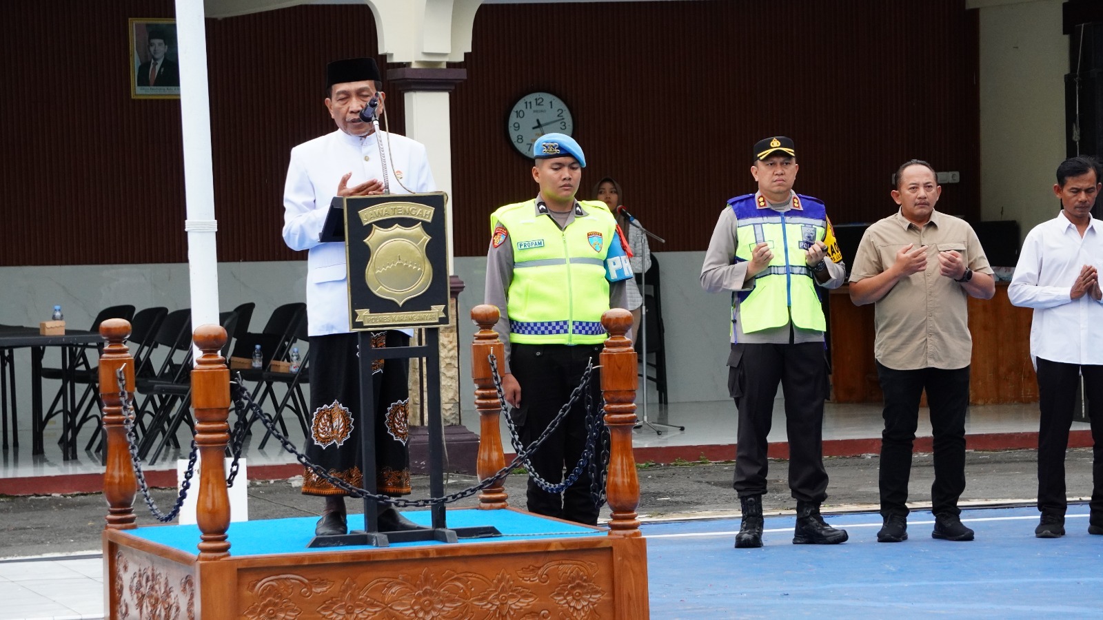 Apel kesiapsiagaan tersebut dihadiri langsung oleh Bupati Karanganyar H. Rober Christanto, S.E., M.M., Kapolres Karanganyar AKBP Dr. Hadi Kristanto, S.I.K., M.M., Wakapolres Kompol Miftakul Huda, S.H., M.H., para pejabat utama Polres Karanganyar, perwira dan anggota Polres Karanganyar, anggota Kodim 0727 Karanganyar, Satpol PP, serta Dinas Perhubungan Kabupaten Karanganyar. Kegiatan juga dihadiri para rohaniawan lintas agama sebagai wujud kebersamaan dan toleransi dalam menjaga kondusivitas wilayah.