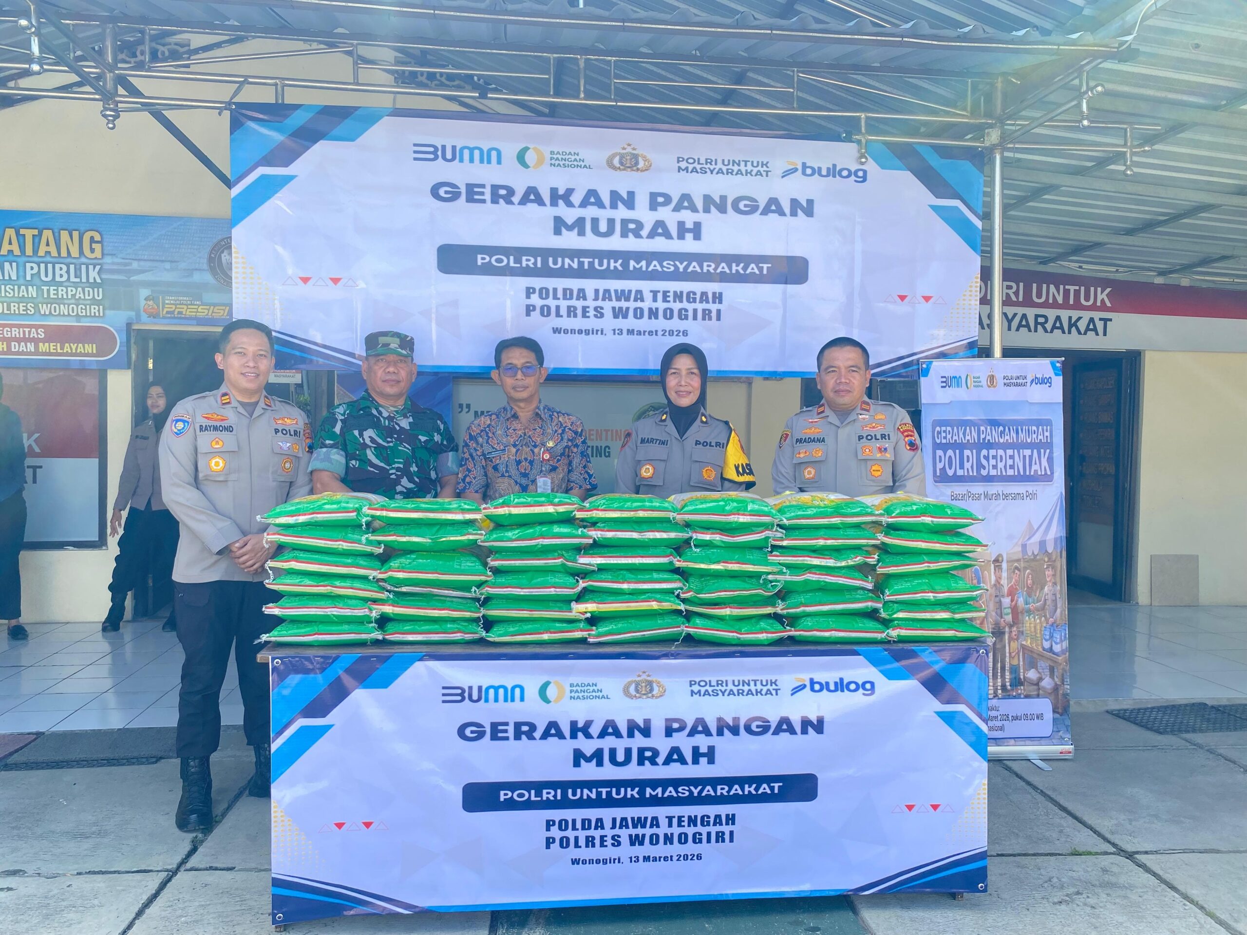Kegiatan tersebut dilaksanakan pada Jumat (13/3/2026) sekitar pukul 09.00 WIB di halaman Polsek Kota Wonogiri dan mendapat sambutan antusias dari masyarakat yang hadir untuk memperoleh kebutuhan pokok dengan harga lebih murah.