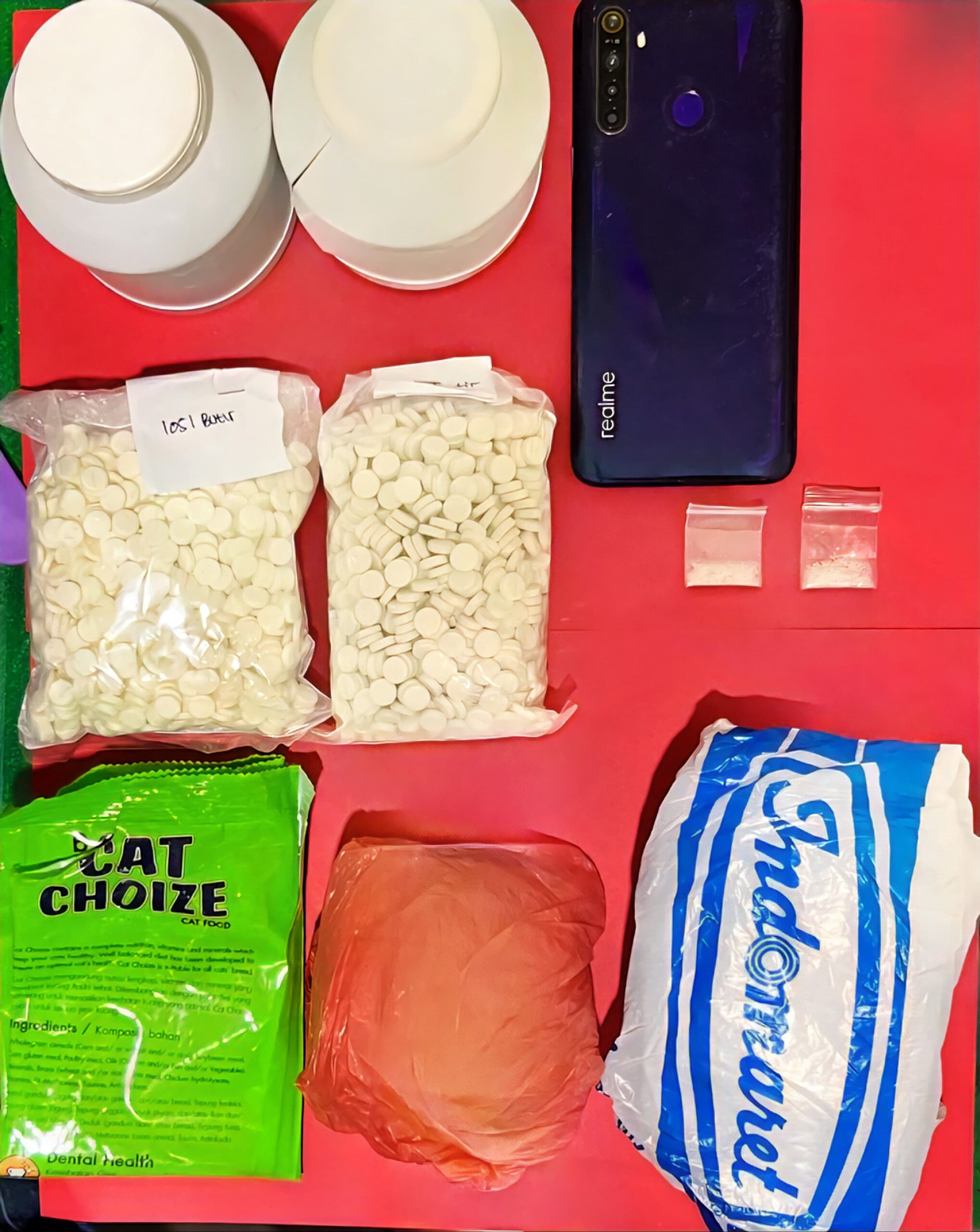 Dari tangan pelaku, petugas berhasil mengamankan sejumlah barang bukti berupa 2 paket sabu dengan berat bruto 1,23 gram serta 2.049 butir obat daftar G jenis yarindo, beserta sejumlah barang pendukung lainnya termasuk satu unit handphone.