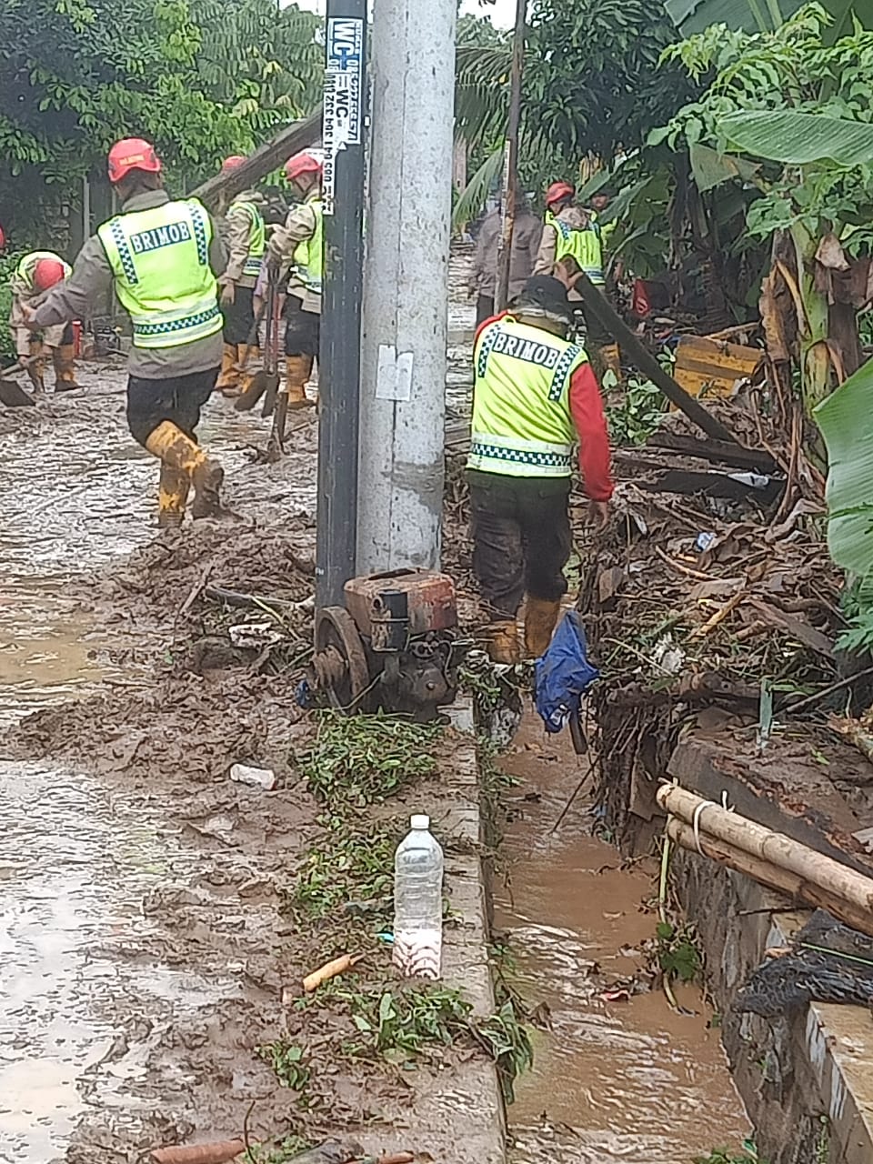 Selain itu, pemerintah desa setempat mengupayakan pengerahan kendaraan truk untuk mengangkut sampah sisa banjir dan penggunaan alat berat untuk membersihkan sisa-sisa bangunan yang rusak, sehingga akses jalan desa dapat kembali digunakan oleh masyarakat.