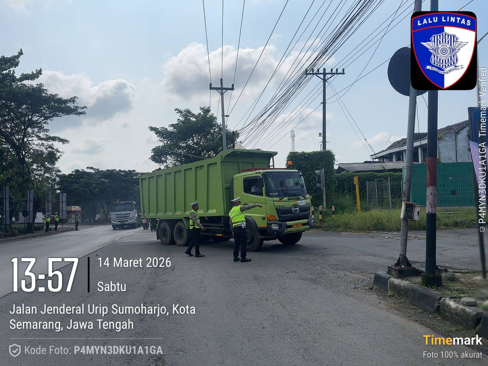 Semarang ,Mandalapost.id – Dalam rangka mendukung kelancaran arus lalu lintas selama masa mudik Lebaran serta pelaksanaan Operasi Ketupat Candi 2026, jajaran Polrestabes Semarang melalui Polsek jajaran melakukan penyekatan dan pembatasan operasional angkutan barang bersumbu tiga atau lebih di sejumlah pintu masuk Kota Semarang, Sabtu (14/3/2026).