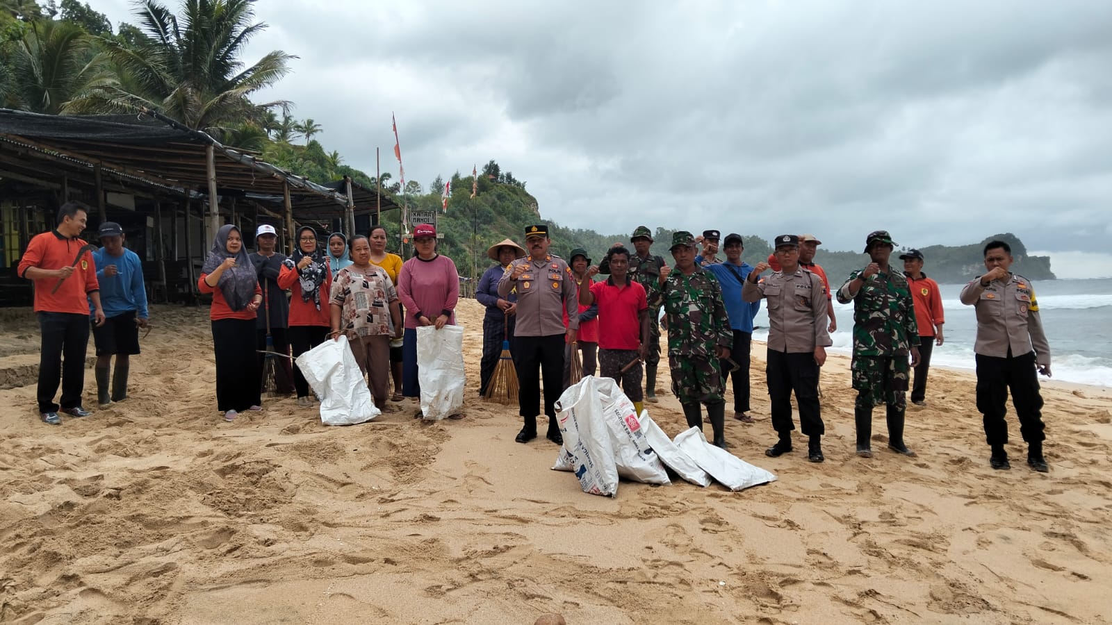 Polsek Paranggupito Bersih-Bersih Pantai Nampu, Polri Hadir Jaga Lingkungan dan Pariwisata Wonogiri