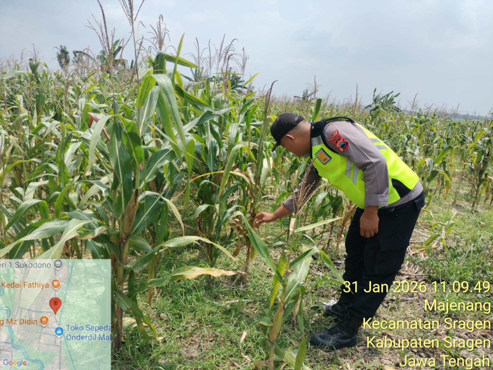 Sragen, Jateng,Mandalapost.i — Upaya menjaga ketahanan pangan terus dilakukan jajaran Polsek Sukodono dengan turun langsung ke lapangan. Pada Sabtu (31/1/2026) pagi, personel Polsek Sukodono melaksanakan pengecekan kondisi tanaman jagung di lahan baku sawah (LBS) milik warga Dukuh, RT 15, Desa Majenang, Kecamatan Sukodono, Kabupaten Sragen.