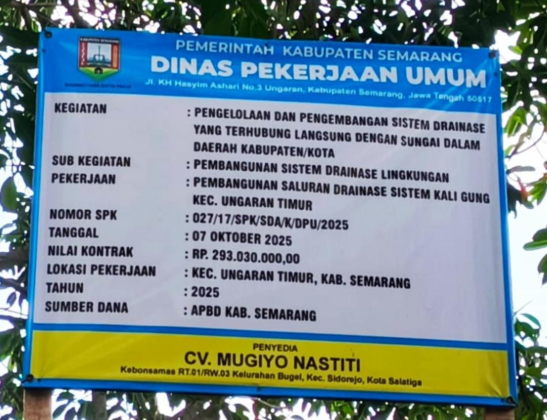 KABUPATEN SEMARANG, MANDALAPOST.ID – Proyek pembangunan saluran drainase di Kecamatan Ungaran Timur, Kabupaten Semarang, menuai sorotan warga. Proyek yang dikerjakan oleh CV. Mugiyo Nastiti melalui Dinas Pekerjaan Umum (DPU) Kabupaten Semarang itu dinilai minim transparansi dan dikerjakan tanpa memperhatikan kualitas serta keselamatan kerja.