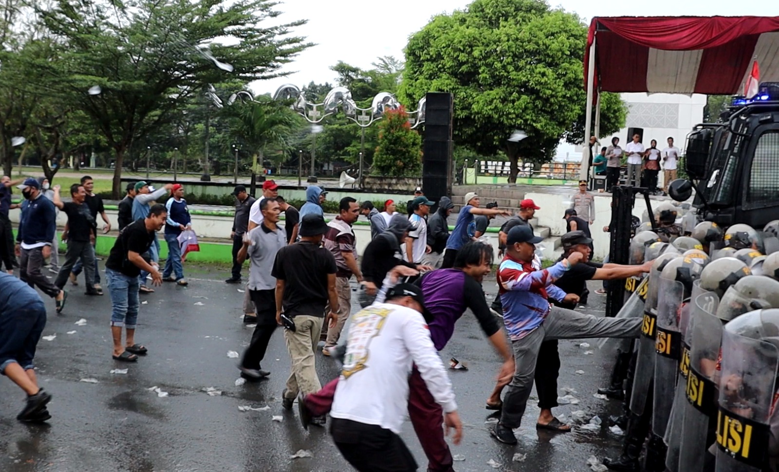 Tim negosiator turut mengambil peran penting dengan mengajak massa untuk tetap tertib dan menyampaikan aspirasi secara damai. Dalam pendekatan humanis, petugas juga terlihat menyapa dan menyalami peserta aksi sebagai bentuk kedekatan, bahkan membagikan air minum kepada massa guna menjaga situasi tetap kondusif dan penuh kekeluargaan.
