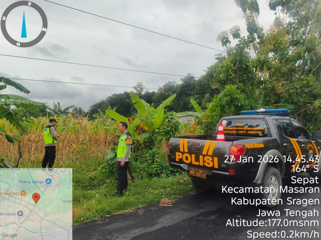 SRAGEN, JATENG,Mandalapost.id — Jajaran Polsek Masaran, Polres Sragen, melakukan pengecekan lahan tanam jagung di Lahan Baku Sawah (LBS) Kwartal IV milik petani Triyanto yang berada di Desa Sepat, Kecamatan Masaran, Kabupaten Sragen, Selasa (27/1/2026).